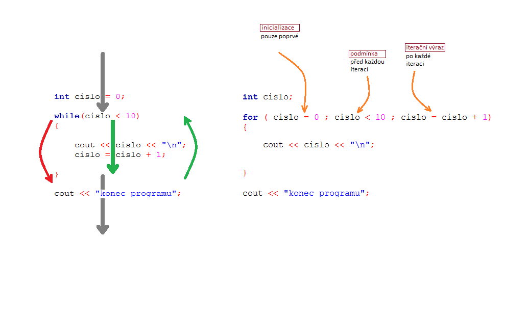 - vysvětlení cyklu s podmínkou na začátku (while)